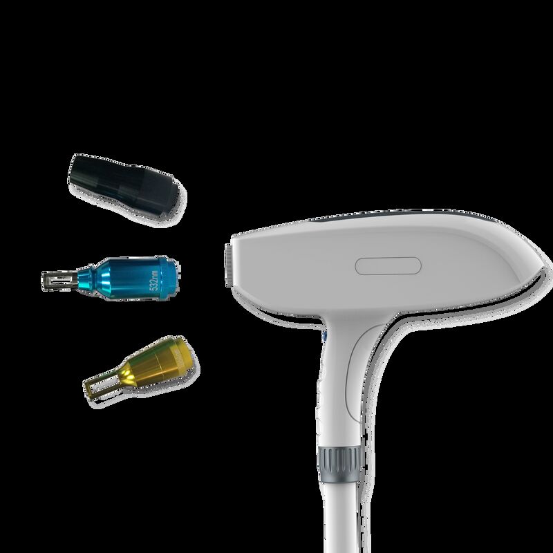 لیزر دارای دو نوک درمان قابل تعویض است که هرکدام طول موج های مختلف را ارائه می دهند: 1064 nm و 532 nm.